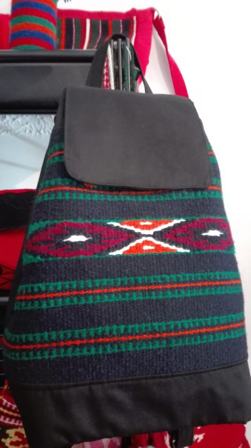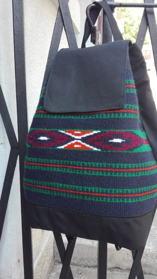 Ovaj ruksak je izrđen sa tkanim tradicionalnim motivom Dinarskih krajeva. Sašiven je sa dekorativnog msterijala alkantara( kao izvrnuta koža) koji ima sva potrebna ojačanja. Ruksak ima podstavu. Izrađuje se 30 radnih sati. Ruksak ima visinu...