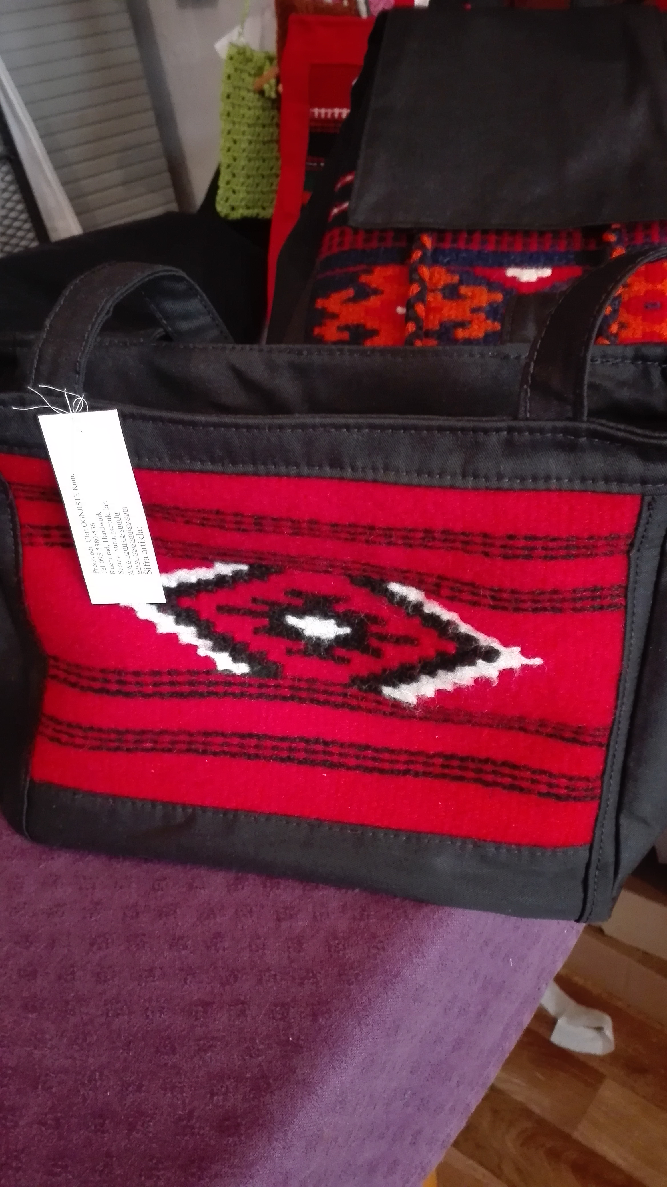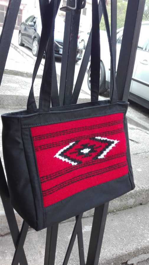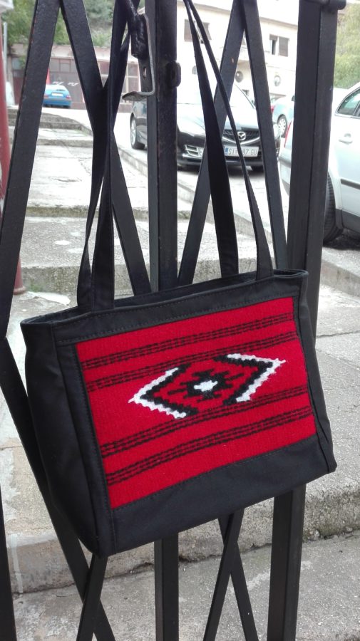 Izrađene su od tkanog materijala na prednjoj strani, na poleđini je materijal crnog kepera. Tkani motiv smo izradili po uzoru Dalmatinske pregače. U torbi je uredna podstava, rajfešlus i sva potrebna pojačanja. Praktične su za svakodnevnu upotrebu. Ima duge ručke te je veoma pogodna za nošenje na ramenu i u ruci.